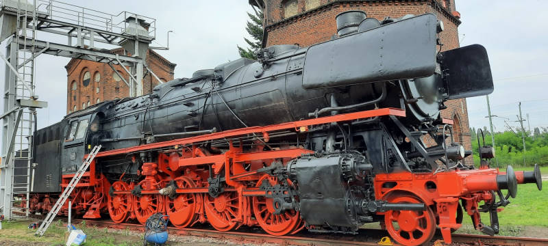 Steam loco 44 594 was delivered to the German State Railway in August 1941. She belongs to a class of heavy freight locomotives designed with three cylinders and capable of putting out more than 2,000 HP. After WWII, many of these locos remained in the GDR, while many more in West Germany were taken into German Federal Railway's stock. Our example spent most of her service working from Dillenburg, Giessen and Betzdorf, while for the last few months of her active service in 1975, she was transferred to Gelsenkirchen.