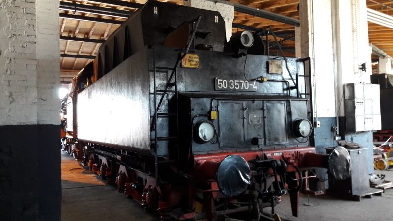 As regular readers of our newsletter will already know, we are currently in the middle of a general overhaul on our steam loco 50 3570. To obtain the official permit ("ticket") following the overhaul, all parts of the engine must be in perfect working order. Since there is still work outstanding on the locomotive's tender - that is, the truck attached which carries its coal and water - the tender has been exchanged with that from 50 3682-7, which still has a valid ticket. This change of tenders will help to speed up the return of 50 3570 to traffic.
