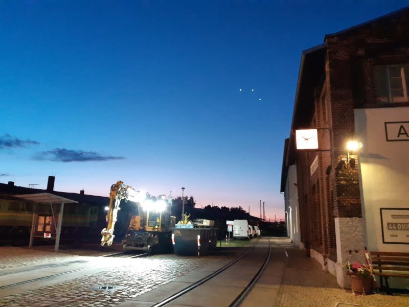 After sevoting recent weekends to recovery and cleaning up after the successful summer party, members once again looked ahead this weekend. First of all, it was observed that our museum grounds were being used as a storage depot for the construction work being carried out on the platforms of ittenberg station. Here, in the twilight hours and late into the evening, building materials were loaded onto railway wagons and pulled to the construction site at the station using a road-rail excavator.