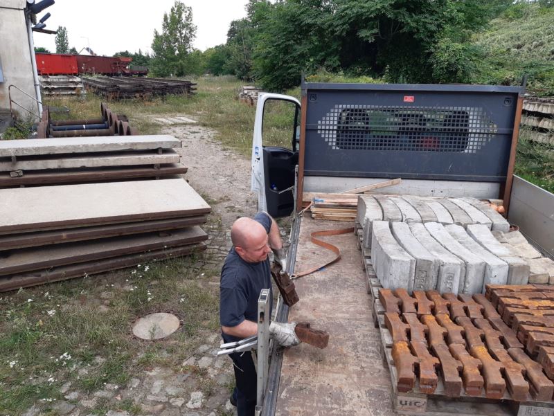Work is also continuing on the museum's infrastructure. To give you some background, the level crossing at our signal box Wm on the former Magdeburg station side was formerly secured with barriers operated from the signal box. We therefore plan to erect barriers again at the crossing of our museum track to the station. We have recently been able to recover the four barrier mounting blocks required in Mecklenburg, which used to stand on a railway line that had already been dismantled.