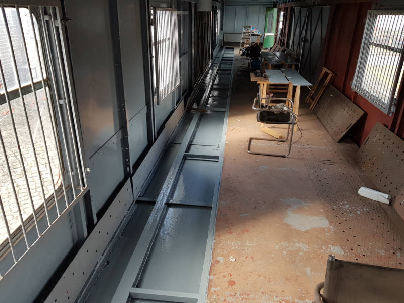 The car transport wagon from Walter Ulbricht's government train also needs a little attention. So the tracks inside the car were cleaned and repainted to give rust no chance.