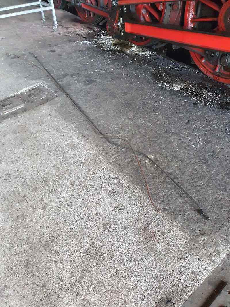 Bei 50 3570 wurde zudem die Zuleitung vom Schieberkastenmanometer ausgebaut, weil sie undicht war. Das dazugehörige Manometer auf dem Führerstand der Lokomotive zeigt dem Lokführer an, wie hoch der Druck des in die Antriebszylinder strömenden Dampfes ist.