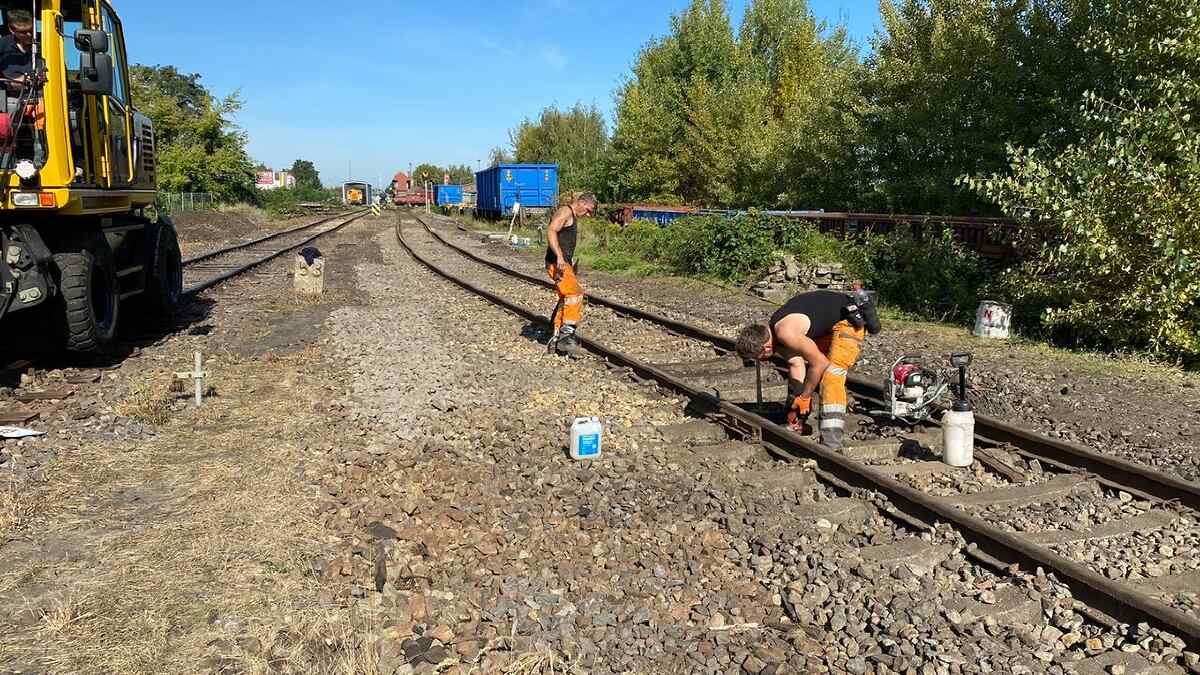 We are continuously working on the maintenance of our track facilities. After all, what good is the most beautiful museum if you can't safely move the vehicles in it. This time, work was carried out on the so-called Magdeburg side of the station. A contractor replaced many wooden sleepers with concrete ones. In addition, remains of points were removed that were no longer needed.