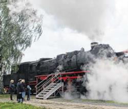 Noch einmal können die Besucher am Wochenende mit der 503570-4 auf dem Führerstand mitfahren. Die Schlange reißt bis zum Nachmittag nicht ab. Familie Jung aus Lindow (Mark) ergattert einen Platz. "Es ist einfach toll. Wir sind das erste Mal hier und total begeistert, was hier geboten wird", erzählt Steffi Jung.