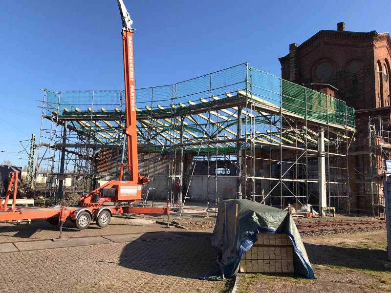 Kathke erläutert, dass es sich bei besagten Anbauten um noch verbliebene Gebäudeteile des ursprünglich überdachten Ringlokschuppens I (Rotunde) handelt. Das Bauwerk steht, auch wenn nur noch in Rudimenten erhalten, für hochkarätige Eisenbahngeschichte aus dem letzten Drittel des 19. Jahrhunderts. Das ambitionierte Ziel des Vereins, der das Eisenbahnmuseum im Ehrenamt führt, ist es laut Kathke, den Lokschuppen zumindest teilweise wieder so herzurichten, dass die drei noch vorhandenen Lokunterstände eines Tages für das Museum bzw. für dessen Betrieb genutzt werden können. Auch wenn es bis dahin noch ein weiter Weg ist, die ersten Schritte sind gegangen.