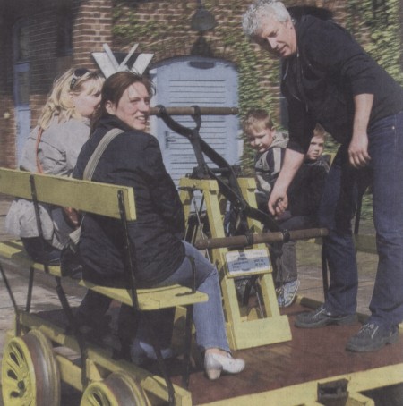 Ohne Dampf und Diesel auf der Schiene unterwegs: Für Almut und Moritz Krüger sowie Doreen und Julian Hartmann war das ein tolles Erlebnis. Draisinenführer Guido Huwe brachte das Gefährt mit den Familien mit Hilfe von Muskelkraft in Fahrt.