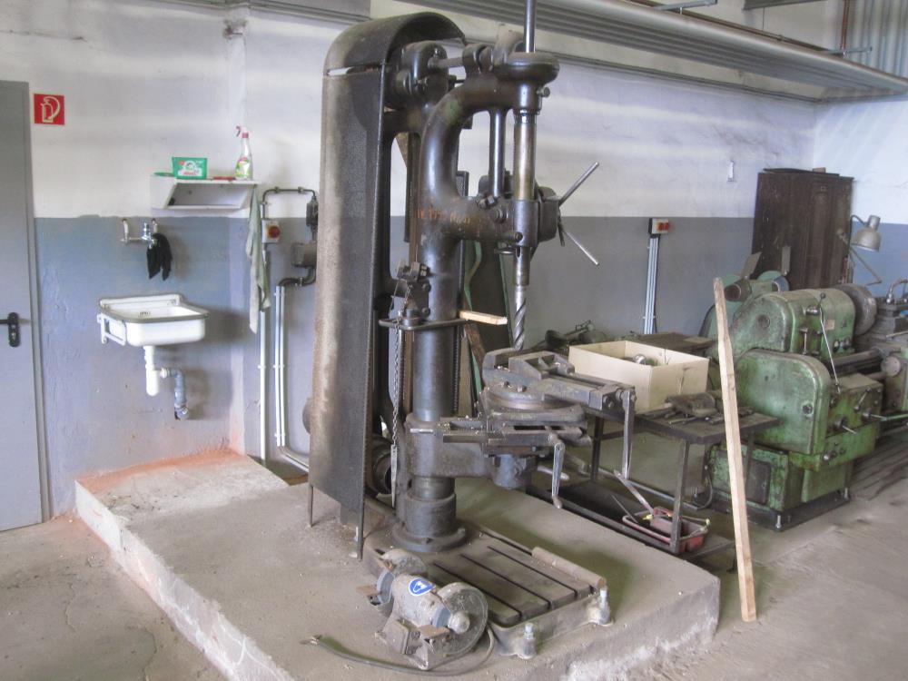 From the entrance lobby you first reach the society's workshop. Here on display there are various machine tools which we use for working on components for our historical exhibits. Most of them came from the former Salzwedel motive power depot and were brought here in 2012. They include a lathe, a bench drill, a power saw and various other machinery used in metalworking.
