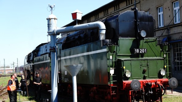 Legendäre „18 201“ macht für einen Wassertankstopp Halt in Wittenberge.